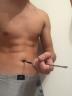 about a handwidth distance above his navel deep inset in his muscular abdominals, the arrow set right perfectly at the top of the pyramidal thatch of belly hair flaring