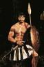 He continues to walk for a few hours and, to his surprise, he finds a water hole. However, someone else has found the water hole before him, and, based on their clothing, they look like an enemy! The muscle man collecting water from the pond is paler, a sign that he isn’t from this desert area, and is only wearing black pants and his boots, exposing his beautiful abs and pecs. His water bottle has the pattern of a northern “barbarian” tribe, and Zhang can’t see what weapons he has, or is hiding.