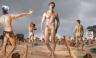 “Now we can see whether there are cocks and balls awaiting greasing. The line up of greased cocks and balls looks good. Yes, I have spotted three sets of cocks and balls needing a fresh application. Go on. Put your hands up so that everybody can identify you. Take note. Everybody put shorts back on if you wish. Otherwise take them completely off but keep boots on.”