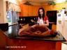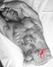 Carefully I put my ear to his bare chest. No heart beat, no breathing sounds - just warm, soft skin against my ear. I kind of fell sorry for the kid, so I gently stroke him down his stomach as if to assure him, that he wasn't alone when he died... Ironic, I know - but who says assasins can't have a conscience.