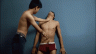I bend him backwards - his t-shirt went up, revealing his sagging pants, the waistband of his boxers and a small stripe of his stomach.