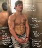 The guy had shown up only 20 or so minutes from closing. His name was Jason. Brett offered up the typical bartender supportive therapy while pouring him some tequila shots. The whole time Brett was obviously staring at his magnificent body that was barely contained by Jason’s button-down shirt and jeans. Jasen noticed Brett’s stare and peeked down at the bartender’s crotch. Jason was clearly interested. Brett told him he had to close up, but he could stay a while if he wanted. Next thing Brett knew they were at Jason’s place. Brett still had the bruises on his chest and abs where Jason got rough. Jason showed Brett his knife collection. He brought out a particularly nasty looking black blade, 8 inches long and sharp as cut glass. The two naked men stood close, both now with painful erections, while Jason lightly touched the blade to Brett’s navel. Both men leaked precum. Brett had never felt so turned on as Jason gently drew the blade up his chest, pressing the point in lightly over his heart. A tiny drop of blood appeared. He smiled broadly, tossed the knife away and shoved Brett back onto the bed. Both men were cumming rivers in just a few seconds.