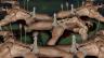 three against one: classic gladiator manoeuvre. Mostly the target has no defence against three bayonets. However, in desperation the target can try and in some cases succeeds in belly button bayonetting an opponent.