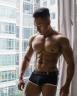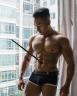 A hot guy is standing next to the window soaking up the sun, then a spear flies through the window and slices through his navel, and finally burying itself in his guts.